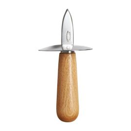 - Using an oyster shucking knife in the other hand, place the tip of the shucking knife at the base of the hinge, twist the knife using pressure, then without the pressure, lever the knife upwards, or twist it to prise the hinge open.