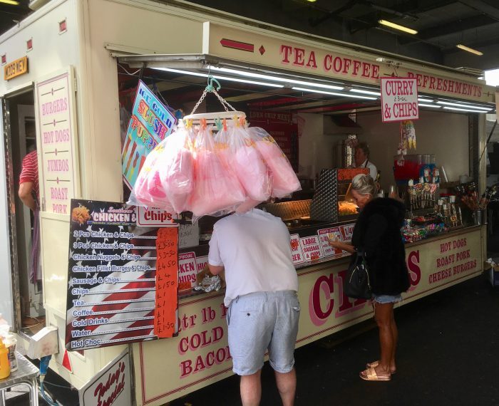 So, what’s the shopping like? Arming myself with an excellent flat white from ‘Full of Beans’ (which came with a complementary choc chip cookie) I went in search of bargains. Trainers are a big sell with brand names such as Vans going for £20. Whether these are real or of real interest to the police I couldn’t say. Builders’ kit is clearly a big draw with men coming from all over to get tooled up with electric saws, drills, spirit levels and the rest.